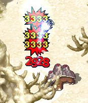 ライジンのエフェクトとバイオジャンクの倒したあとのグラフィック、HP・MPバーの影響でジョイくんの髪がなんだか長く見えます。